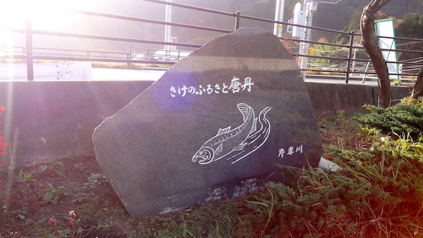 新道と旧道の間には、さけのふるさと唐丹・片岸川と書かれた新しい石碑がありました。