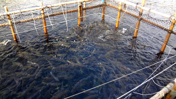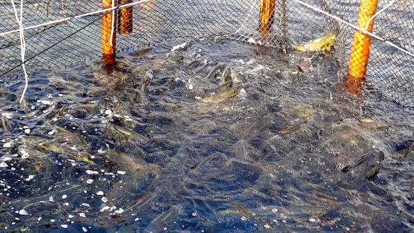 すぐ近くにある釜石市唐丹町漁協には大きな生け簀があり、こちらにも多くのさけが泳いでいました。