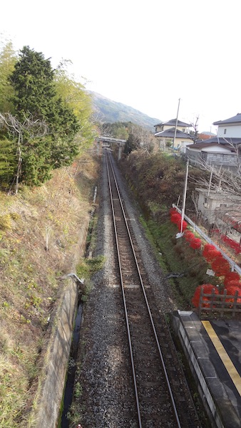 吉浜駅に着くとすぐに列車を降りて、小さな跨線橋(歩道橋)へ向かいます。そして今乗ってきた列車を見送ります。無人駅なのでその気になればすぐに移動できるのです。