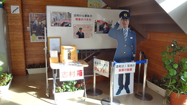 駅舎内には志村けん駅長の等身大パネルがありました。非常勤駅長に就任しているようです。