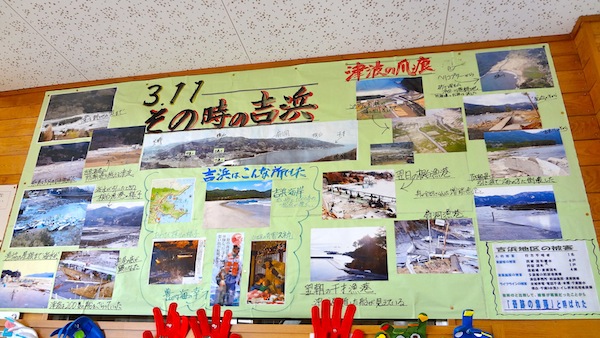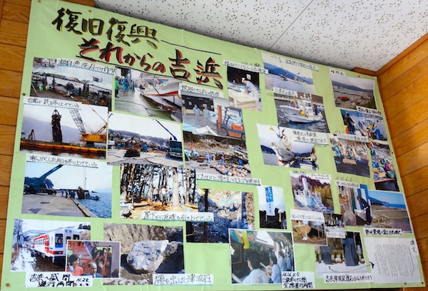 大震災直後の吉浜と、復興してきた吉浜の写真が展示されています。