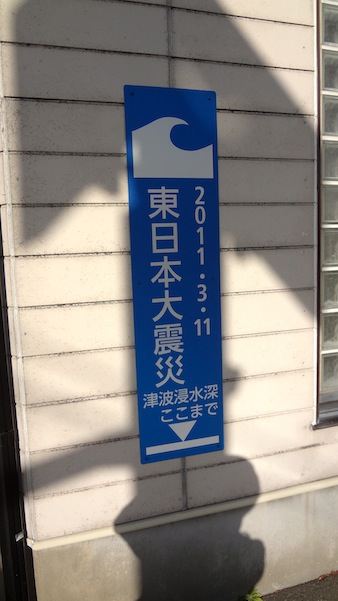 駅前派出所のそばにはこんな看板が。駅を超えてまで津波が来たのですね。