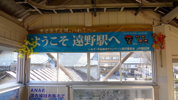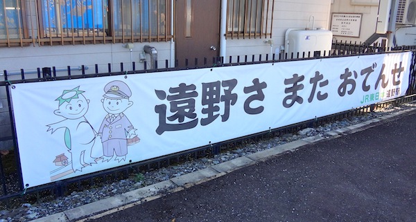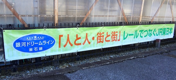 銀河ドリームライン釜石線「人と人・街と街」レールでつなぐJR東日本と書いてあります。カッパを探しましたがここにはいないようです。
