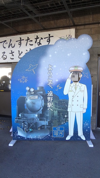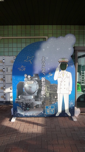 駅舎を出るとSL銀河の穴あきパネルがありました。