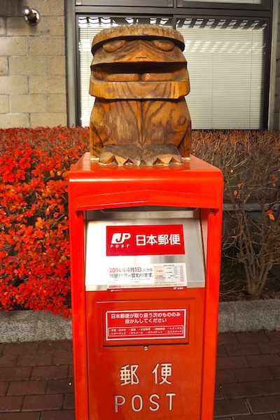 ポストの上にもカッパです。ちょっとカエルに似てるかな?