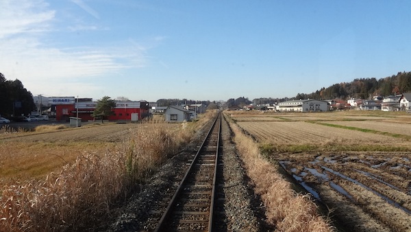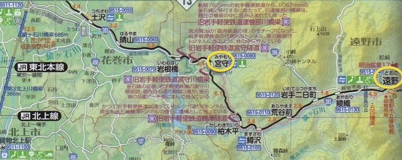 定刻の13時05分に遠野を出発しました。普通列車で、2両、ワンマン、セミクロスシート、トイレ付きです。天気がよくて景色もいいです。こんなのどかな時間はゆっくりと過ぎていってほしいのですがそうも行きません。