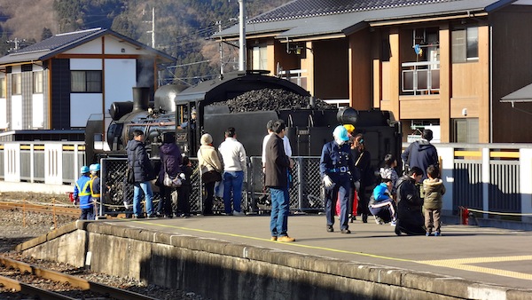 向こう側のホームでは蒸気機関車が点検を終えたのか、客車に戻ってきていました。