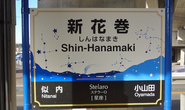 列車は新花巻へ到着しました。この駅の愛称はステラーロで意味は星座です。
