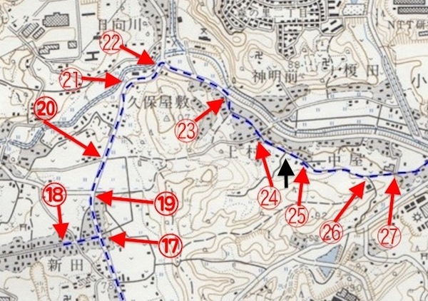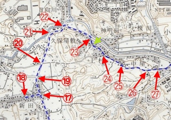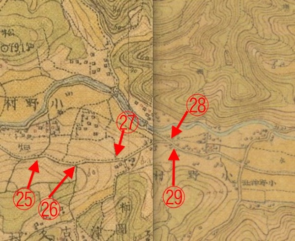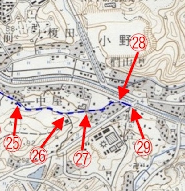 (25)から(26)へ向かいます。古地図と新地図で(25)の場所がちょっとずれていますね。まぁ、気にしないでいきましょう(笑)