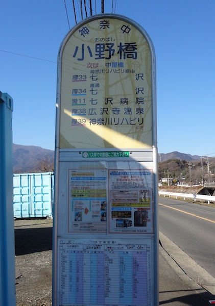 バス停小野橋もこのすぐ近くにあります。今回の旅はここで終了です。次は伊勢原交差点を東へ行くことにしましょう。