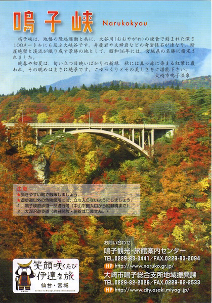 最初の目的地は鳴子です。鳴子温泉には、2011年1月に伊勢原の輪のオヤジの遠足で来たことがあります。今回の目的地は紅葉で有名な鳴子峡です。