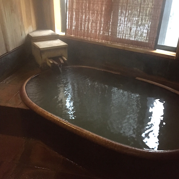 この大きな風呂桶は信楽焼きで特注だそうです。それにしても風情があるお風呂です。身体全体が温まりました。