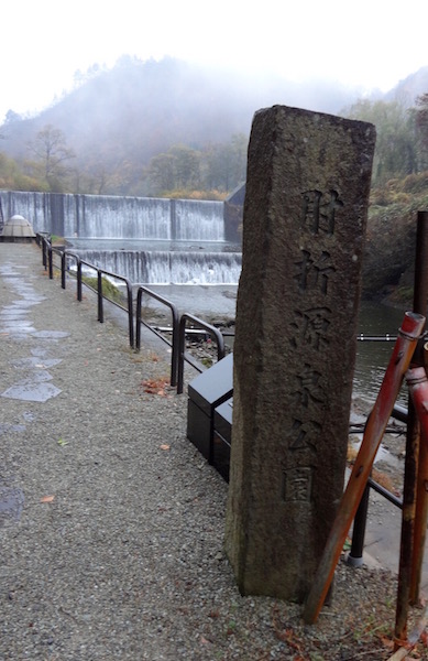 さらに進んでいくと源泉公園が近づいてきました。源泉公園の手前にだんご屋がありました。こんなに大きな看板出さなくてもわかるとは思いますが、きっと「だんご」にプライドがあるのでしょう。財布を持ってこなかったので買うことはできませんでした。