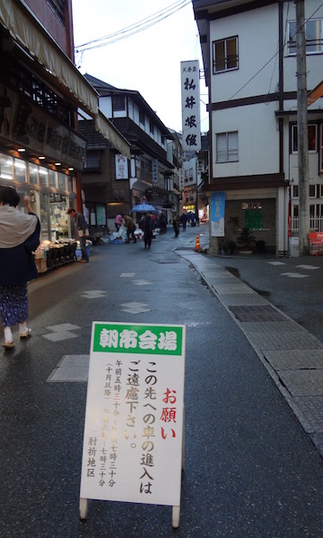 山あいの温泉街にしては賑やかな路地です。もちろん温泉宿も道の左右に並んでいます。
