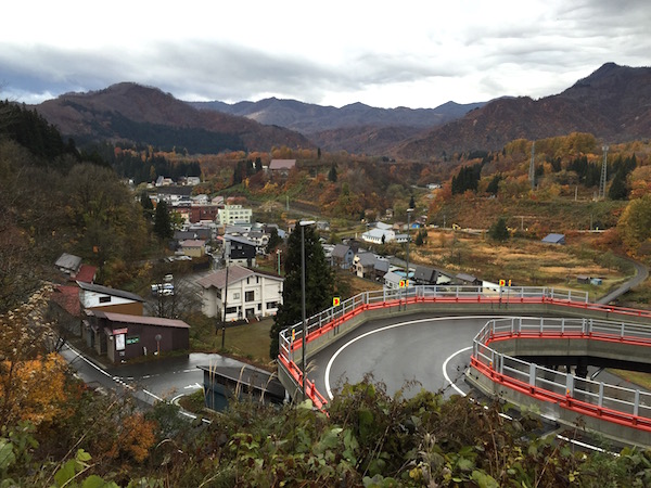さて肘折温泉を後にします。肘折希望大橋から肘折温泉を見下ろして別れを告げます。