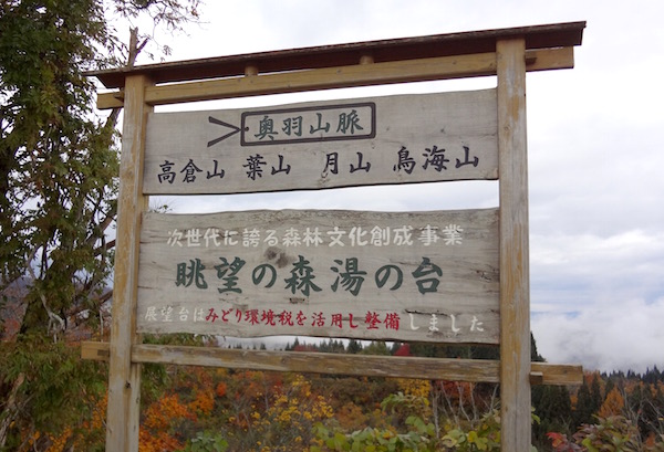 来るときには気が付きませんでしたが、こんな看板がありました。「奥羽山脈」高倉山、葉山、月山、鳥海山が見えるそうです。