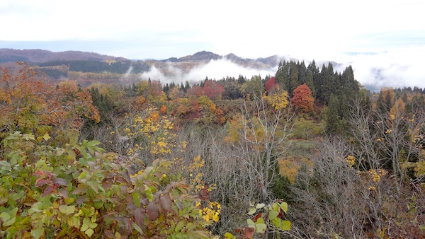 どこが何山かはわかりませんが、朝もやと紅葉が相まってなかなか素晴らしい景色です。