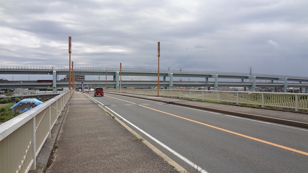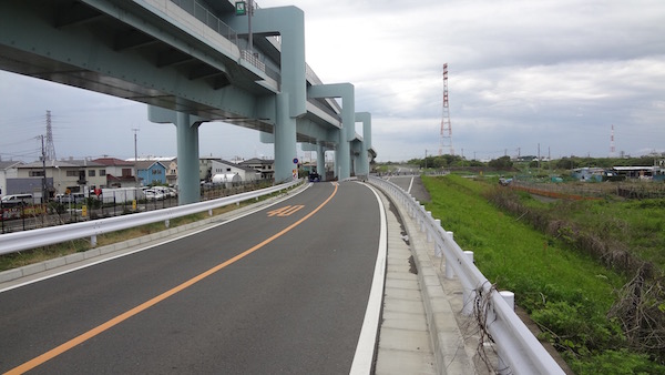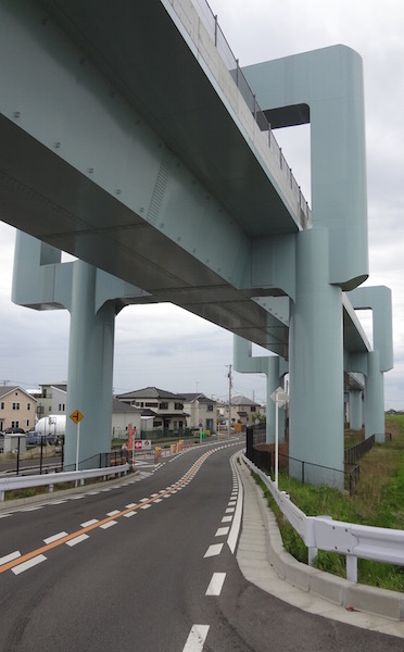 進行方向にはさがみ縦貫道路の高架が見えてきました。茅ヶ崎と相模原市を南北に結ぶこの道路ができたおかげで、東名高速から中央高速、そして関越自動車道への乗り換えが便利になりました。