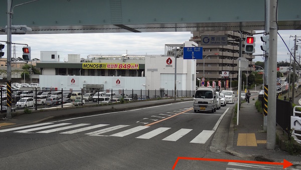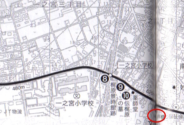 地図(8)の一之宮小入口交差点にやって来ました。
