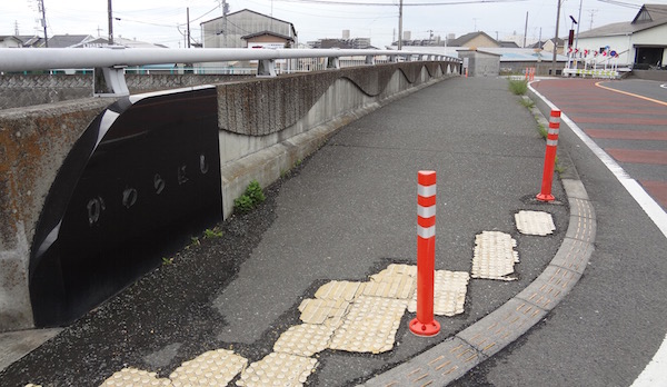 改めて歩道をみると、ここだけかなり幅が広い歩道があるのです。ますます不自然です。