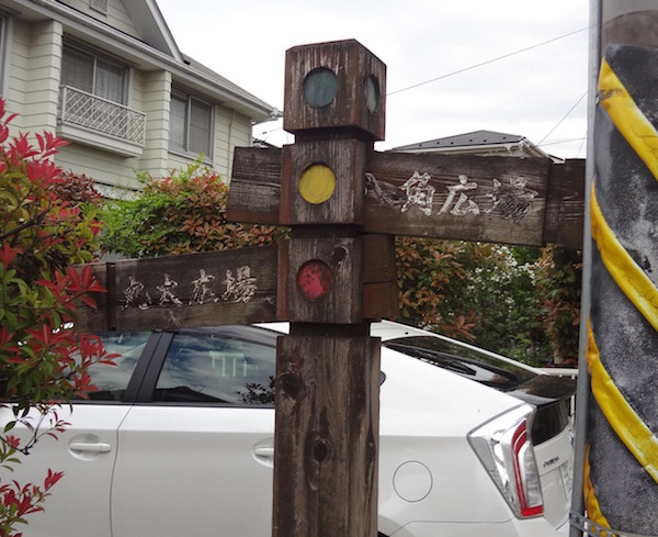 この信号を右に行くと八角広場で、左に行くと丸太広場と書いてあります。一之宮公園を通称丸太広場とも言うようです。
