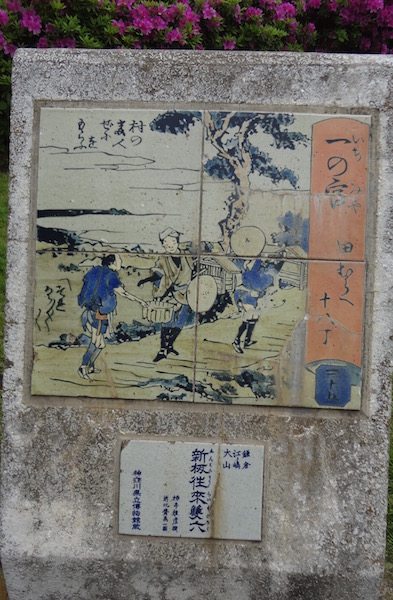「江戸時代、大山講と称する講が関東一円にひろがり、江戸から大山阿夫利神社へ幾本かの大山街道が発達したが、最も隆盛を極めたものが東海道という一番安全な道を利用し、昔語りの名勝地となった鎌倉や行楽地の江の島を訪れてのコース〜東海道藤沢の西、四つ谷から西方に進み、大曲、中瀬、一之宮から田村の渡しを経て大山に通じる〜この道であった。」