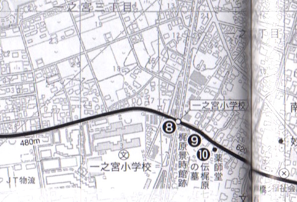 地図(9)の梶原景時館址です。