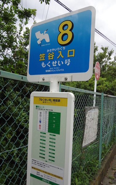 道の途中にもくせい号の笠谷入口バス停がありました。地域のコミュニティバスでしょうか。最近では、ローカル路線バス乗り継ぎの旅でもよく利用されるコミュニティバスですが、ここにもありました。ところで「笠谷」と聞いて札幌オリンピックを思い浮かべる私は、もう歳なのでしょう(泣)。