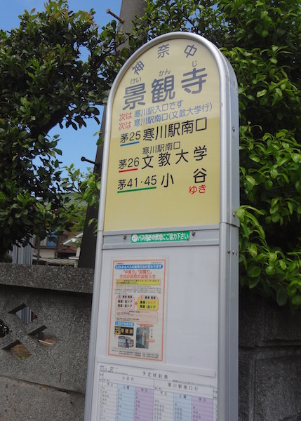 景観寺バス停です。今日の散策はここまでとします。これから寒川駅に向かい、相模線で厚木へ、そして小田急線に乗り換えて伊勢原へ戻ります。