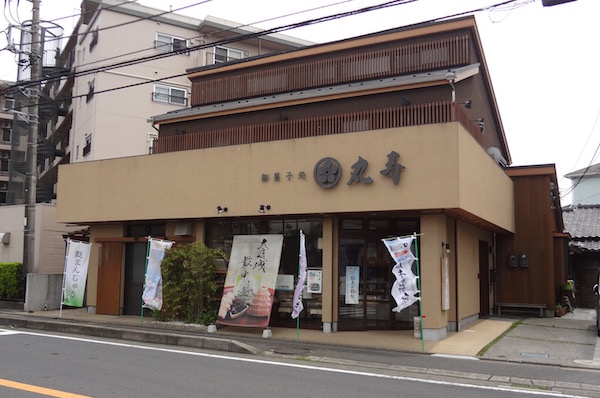 進行方向右側には御菓子処丸寿があります。きっと老舗なのでしょう。