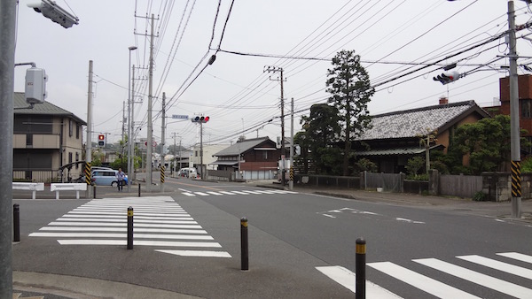 大きな交差点で、歩道のある場所までかなり距離があります。