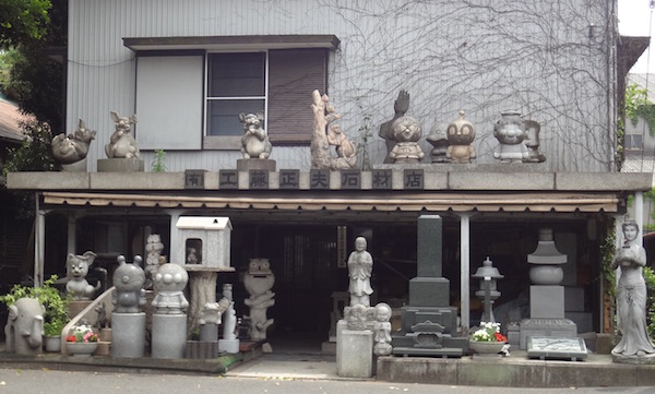 正面入口の反対側には、ユニークな石像が多く陳列されている工藤正夫石材店がありました。