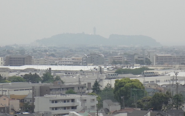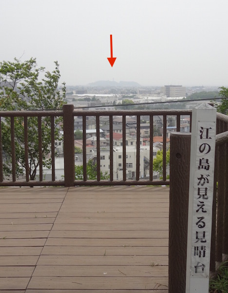 ここが江の島が見える見晴台です。正面に江の島がうっすらと見えています。
