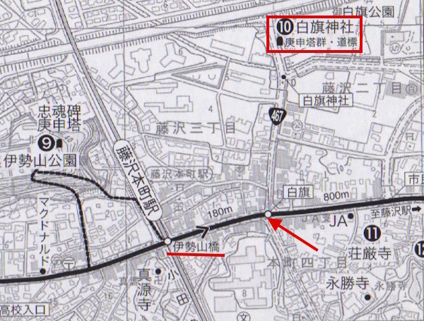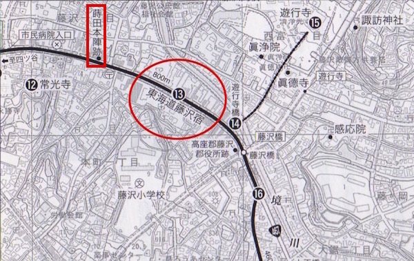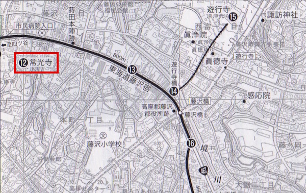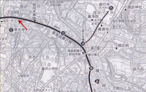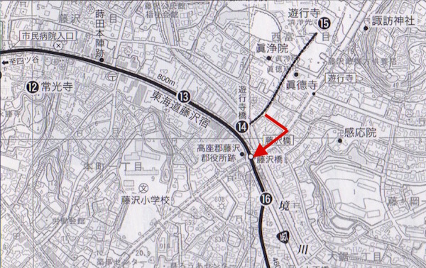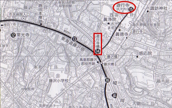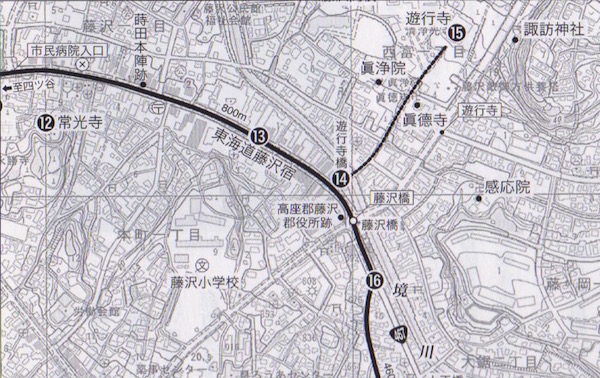 地図(13)あたりが東海道藤沢宿の賑わった界隈です。