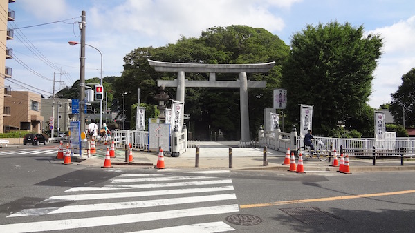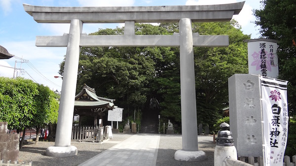 しばらく進むと正面に大きな鳥居が見えてきました。地図(10)の白旗神社です。