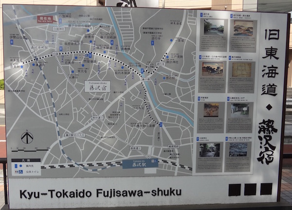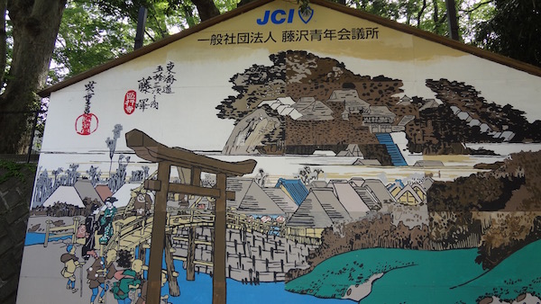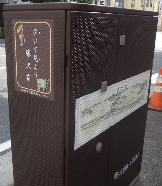 このあたりの歩道上のトランスボックスには藤沢宿の絵が描かれています。