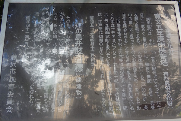 これは江の島弁財天道標です。右側面には「一切衆生」と書いてあります。
