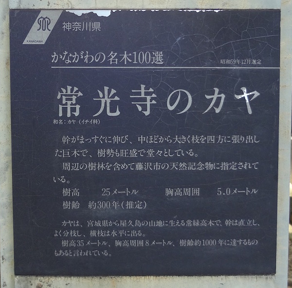 かながわの名木100選に常光寺のカヤが選ばれています。