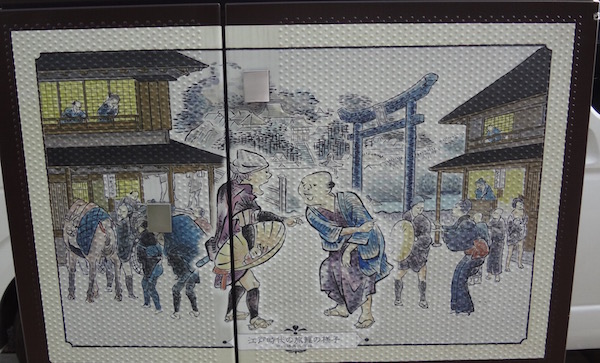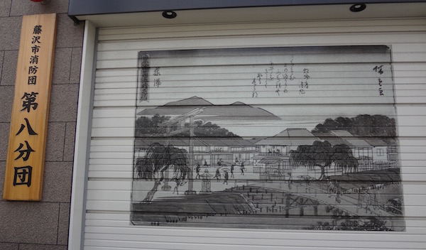 遊行寺の近くの藤沢市消防団第八分団のシャッターにも藤沢宿の様子が描かれています。