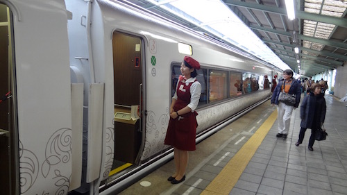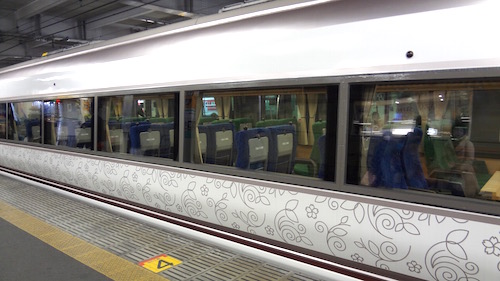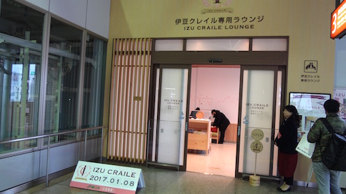 JR小田原駅構内には伊豆クレイル専用のラウンジがありました。小田原からは伊豆クレイルで伊豆急下田を目指します。アテンダントに切符を見せると中へ入れてくれました。