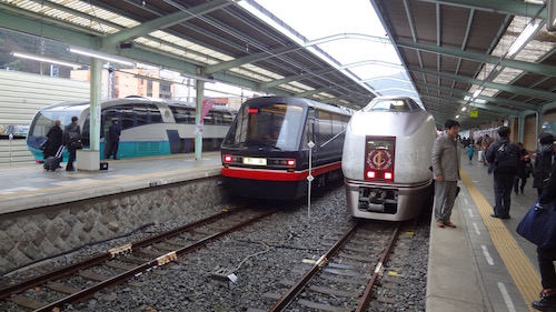 向かって右が伊豆クレイル、真ん中が黒船電車、左が特急スーパービュー踊り子です。