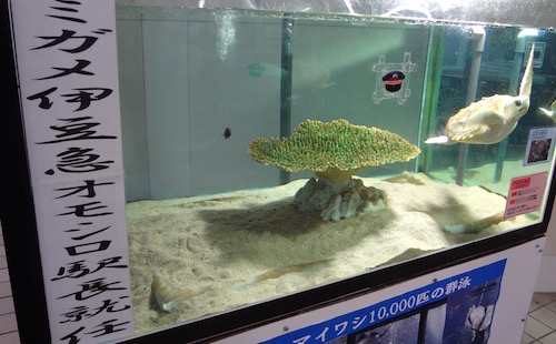 伊豆急下田駅にはウミガメの駅長がいます。