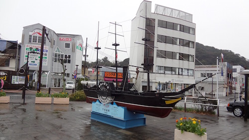駅前広場には黒船もあります。