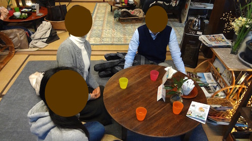 座敷に座ってしばし休憩です。今日は観光も切り上げて早めに旅館にチェックインすることとしました。