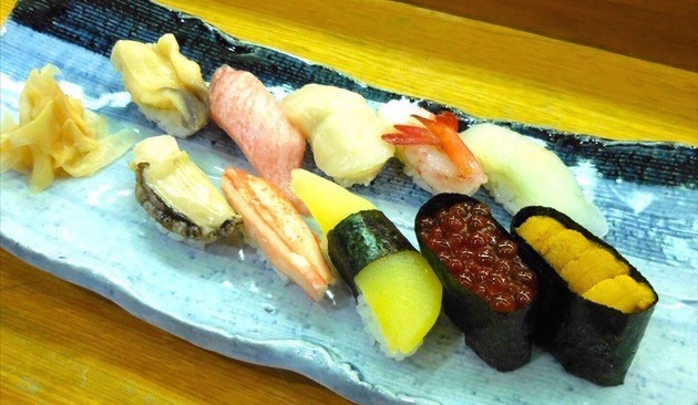 昼食は岩内駅近くの清(せい)寿司本店でいただくことにする。看板メニューの本店鮨を注文し、ペロリと平らげた。