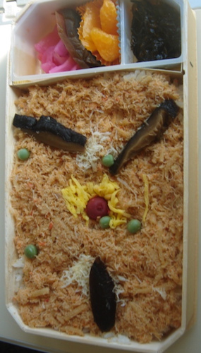 長万部といえば「かにめし」。駅の近くのかにめし本舗でかにめしを購入する。
