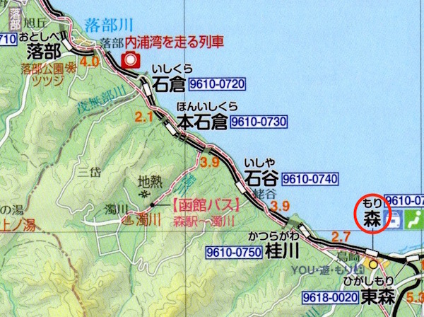 平野は落部駅と野田生駅の周囲にあるに過ぎない。そのため内浦湾(噴火湾)がよく見え対岸の水平線上に室蘭から長万部の山並みが望まれる。羊蹄山も見える。