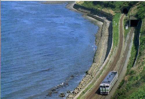 森駅を6時38分発の普通列車で倶知安を目指す。森から八雲あたりまでは、狭い浜を走ることになる。