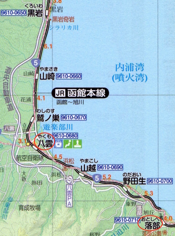 遊楽部川の河口付近は内浦湾西岸では一番広い平野になっていて八雲はその中心である。八雲から長万部まではそれまでに比べると広い浜を線路は走っている。