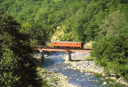御園駅では対向列車の急行いぶりの到着を10分以上待つ。急行いぶりが出発してからすぐに先を急ぐ。御園を出て徳舜瞥山の尾路園トンネルを過ぎると新大滝へ。御園〜新大滝までは13.6kmもあり約30分かかる。新大滝は大正時代から徳舜瞥鉱山の鉄鉱石の運搬で賑やかだった。